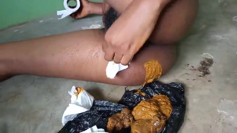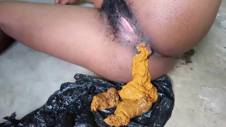 African babe strains out a big messy poop