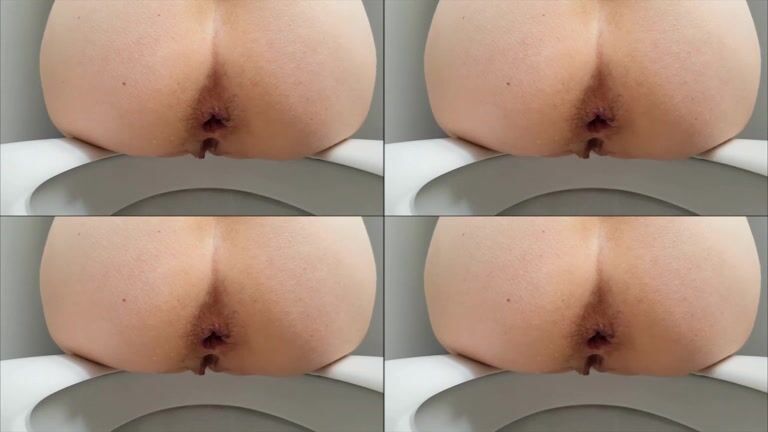 «What a pretty pissing pussy! Love seeing her huge dark poop getting pushed out like that»