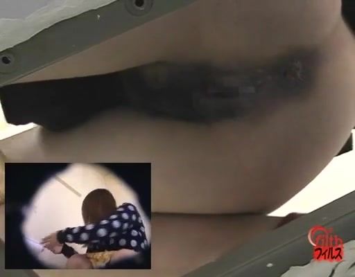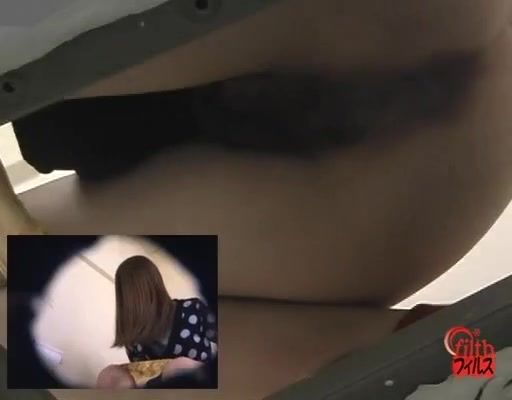 Amateur brown haired Japanese girl is pooping in a public bathroom. She didn't know that a hidden camera was installed there and we can see her.