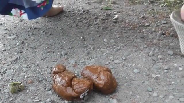 Girls pooping outdoor
