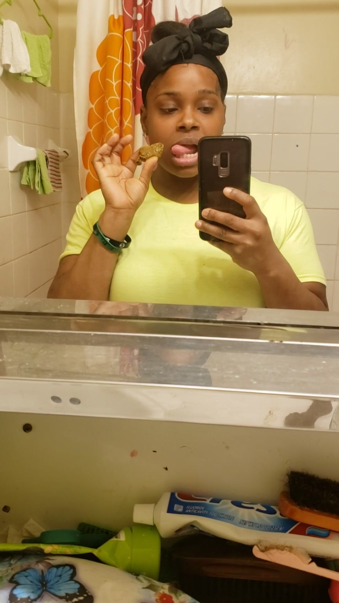 Amateur ebony milf eating poop in toilet