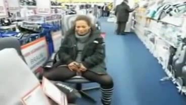 Amateur girl flashing her pussy while she's peeing in a supermarket.