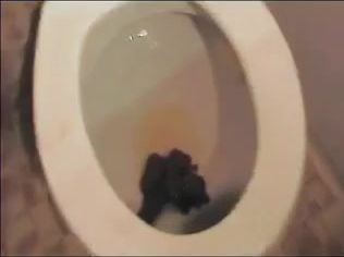 Amateur girl is shitting and peeing in her white panties. She threw those dirty panties in the tub.
