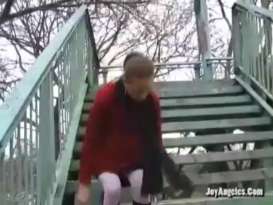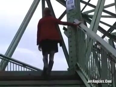 Amateur girl pooping on the foot bridge