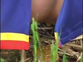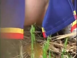 Girls pooping outdoor