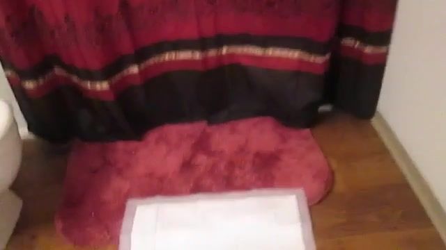 Amateur girl sits on her knees while she's pooping a big one in doggy style position.