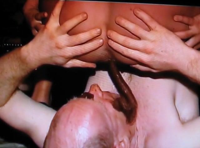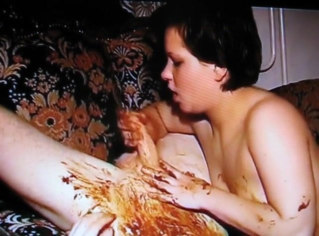 Amateur mistress shitting on her chubby slaves face. She smears that fresh poop on his entire body.