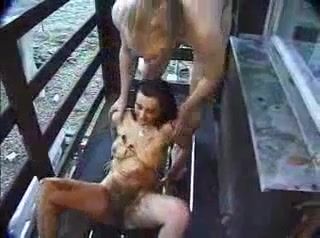 Girls pooping outdoor