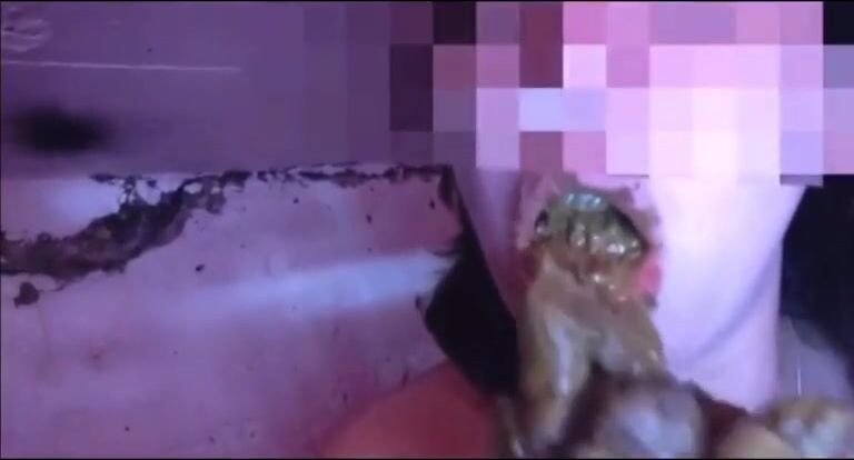 Amateur scat whore eating and swallowing shit