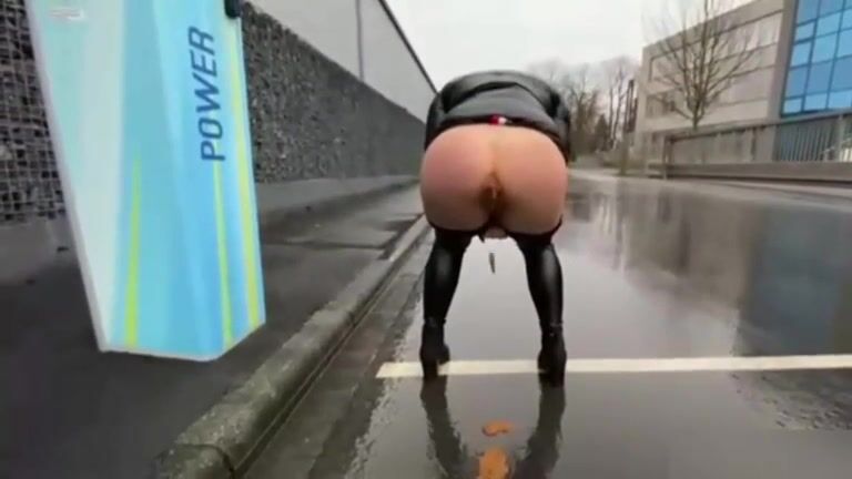 Amazing babe shits on the road