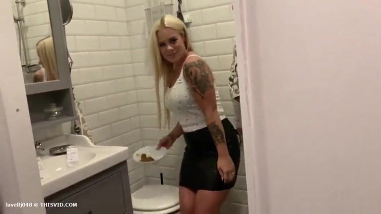 Amazing blonde cheeky milf poops