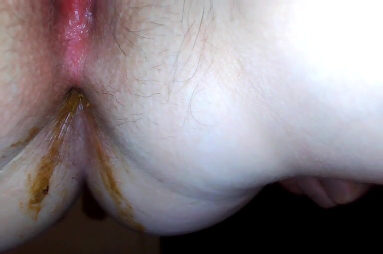 Amazing hairy pussy lady leaking shit
