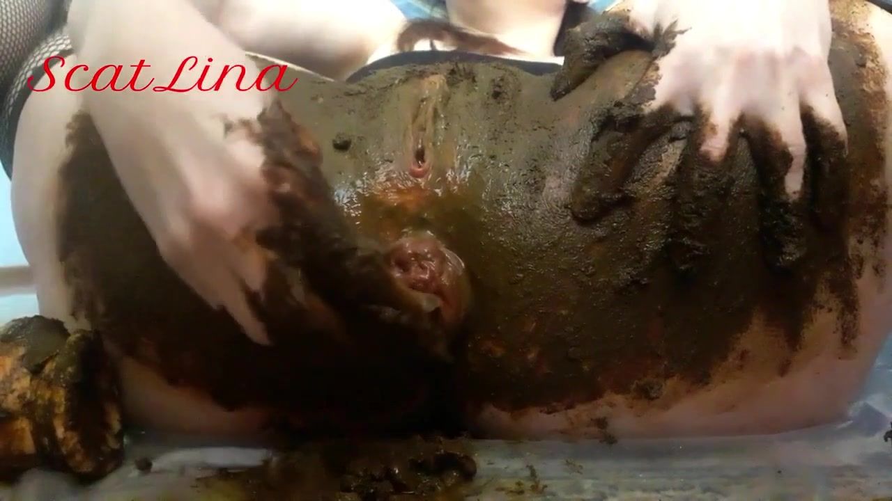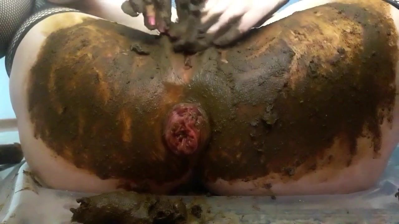 Rubbing poop on shaved pussy. Anal prolapse after she finished masturbating.