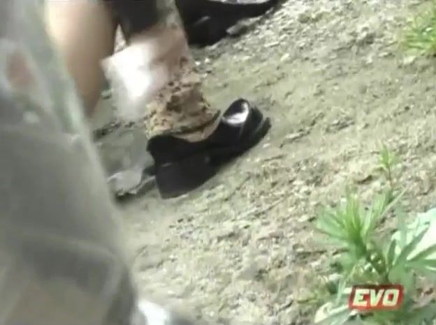 Brown haired Asian girl is shitting in public. She was very ashamed about it but she couldn't find a public bathroom in time.