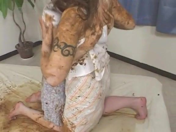 Two sexy lesbian girls are kissing sensually with scat. One of them has smeared shit on her entire face and body. They are so happy and proud about this…