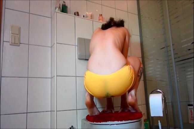 Babe pooping on her yellow panty