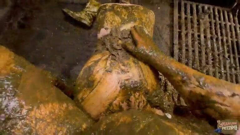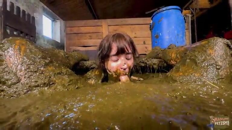Babe swims in shit and piss in barn