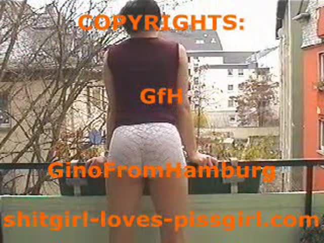 Redhead babe dropped big turds in white panties. She smears shit on her curvy ass.