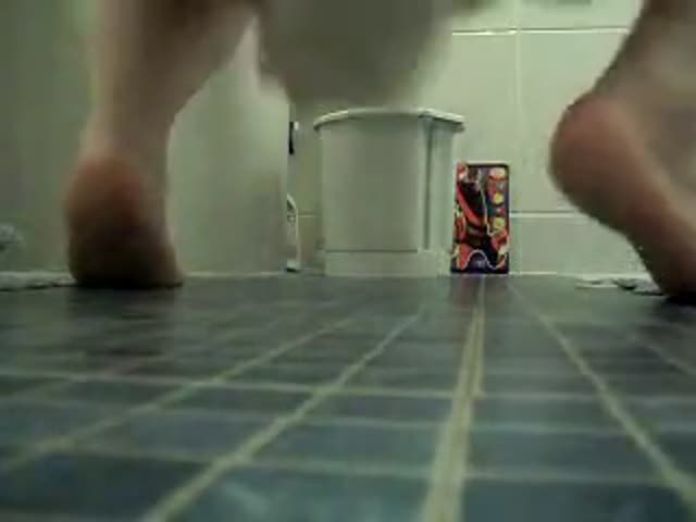 BBW babe sits naked on her knees and she's eating her own shit without gagging.
