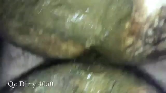 BBW babe covered her naked body with brown shit. Her naughty boyfriend is fucking her hard in doggystyle.