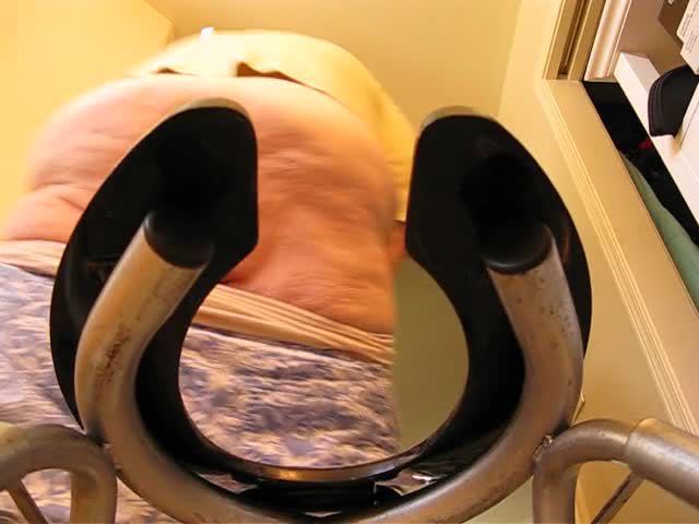 BBW babe shitting on a homemade toilet. She records her asshole in close up.