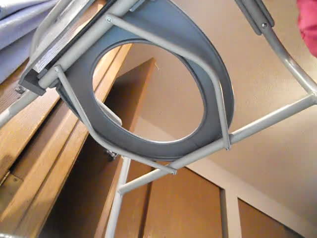 BBW babe sitting naked on a homemade toilet. She managed to poop a big one in the middle of the bedroom floor.