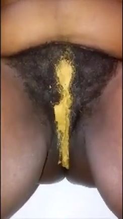 BBW babe smears poop on her hairy pussy. She wants to masturbate in unique way.