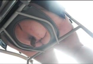BBW babe using a homemade toilet as she's pooping a big turd. Her home toilet was out of service.