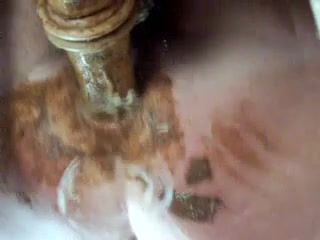 BBW babe inserts a long dildo into her tight asshole. She takes it out with a lot of shit on it.