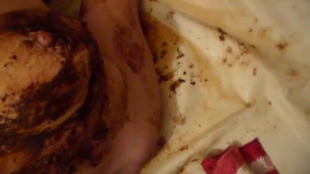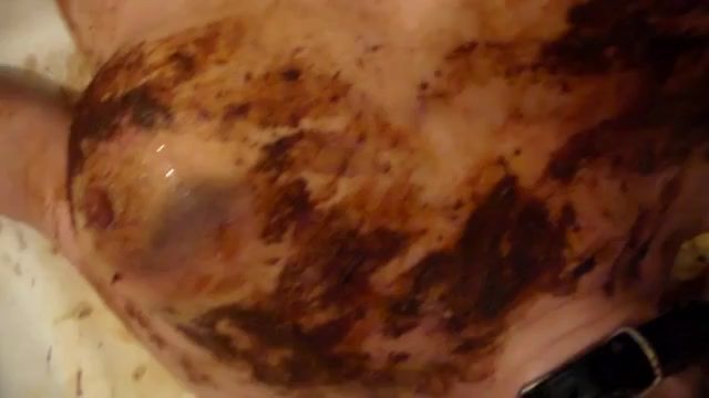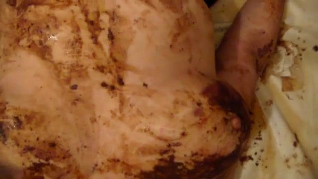 BBW brunette slut teasing with her shitty body. She smeared poop on her entire body.