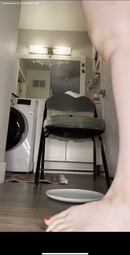 Beautiful bbw lady shitting backwards on a chair