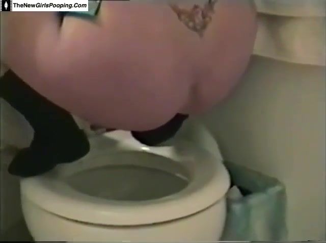 Beautiful blonde fingering her pussy hard while pooping over toilet.