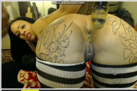 Beautiful tatted babe enjoying anal solo bang with shit