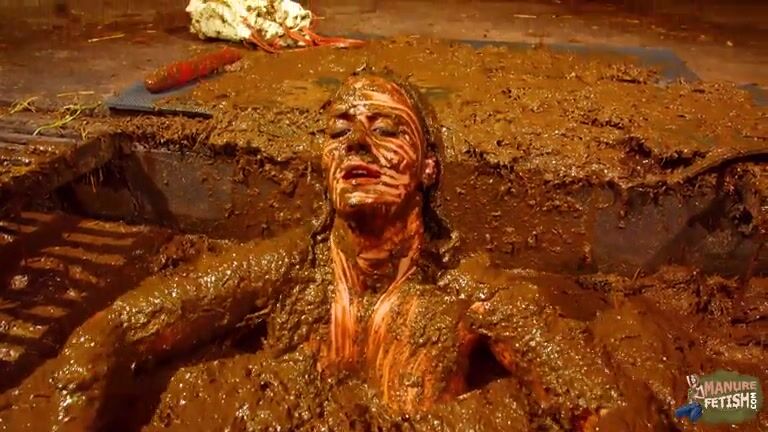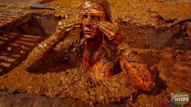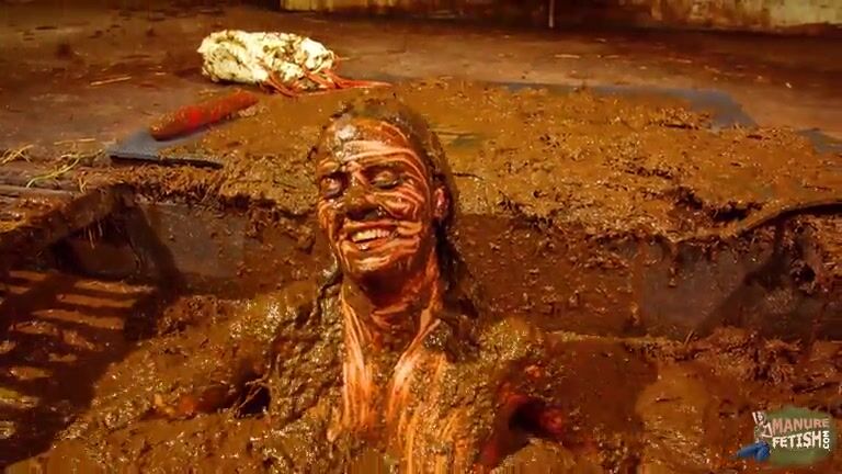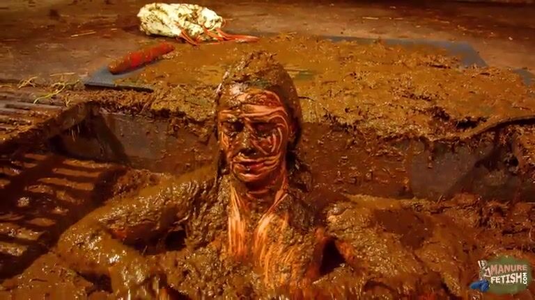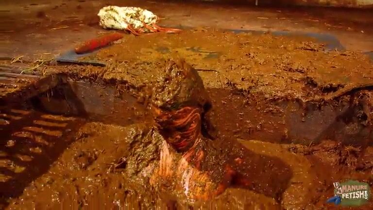 Betty has fun in the manure channel - bathing in the cowshit