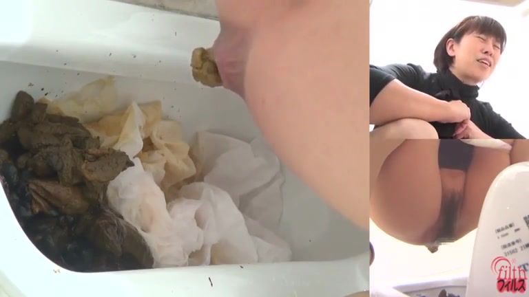 Beautiful teen dropped a huge amount of poop in a public bathroom. She clugged the toilet.