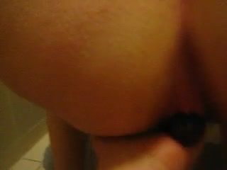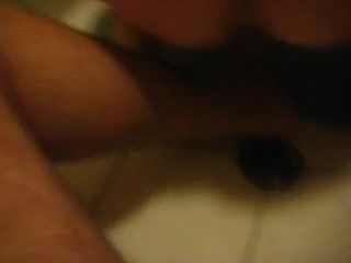 Sexy babe forced her boyfriend to sit naked on his knees on bathroom floor. She dropped a big turd on his hands.