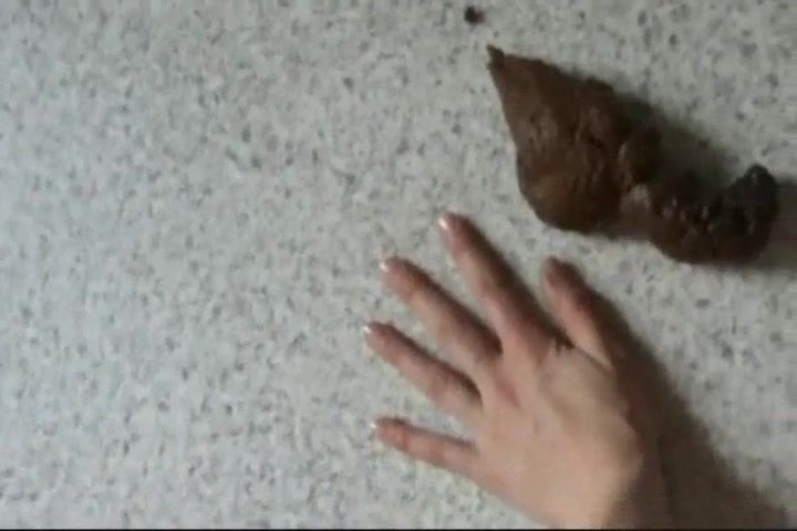 Blonde babe spreads her legs wide opened. She dropped a huge turd on bathroom floor.
