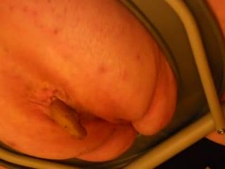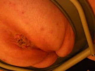 In this video we can see a BBW girl that sits naked on a homemade toilet. She starts pooping a big turd on the floor…