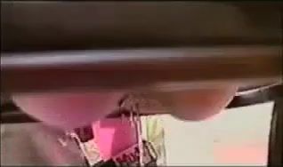 Black girl sits naked on a black homemade toilet while she's pooping on the floor, on a balcony.