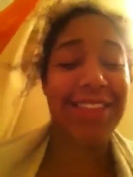 Black girl sits half naked on a toilet while she's pooping an talking dirty.
