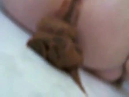 Blonde babe pulled her blue panties aside so she can easily poop on floor.