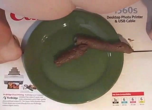 Beautiful blonde sits on her knees and she's pooping on a white plate. She wiped her dirty ass.