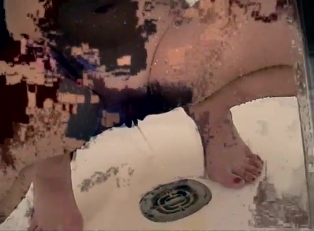 Blonde Czech girl spreads her legs wide opened while she's peeing with pressure on bathroom floor.