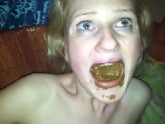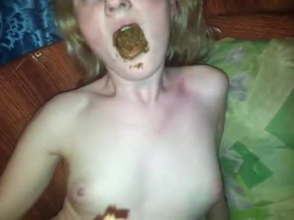 Blonde girl eating poop before sex
