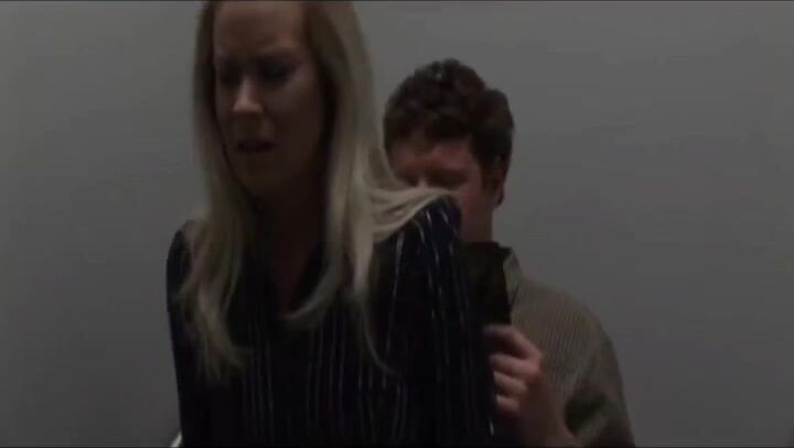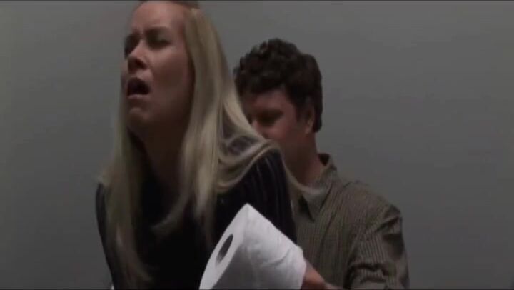 Blonde girl pooping while shitting on a guy