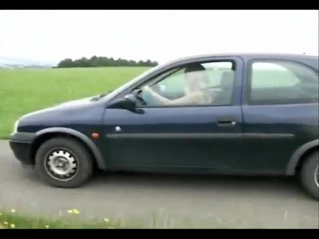 Blonde babe pulled her car on the side of the road so she can easily poop and pee on the ground.