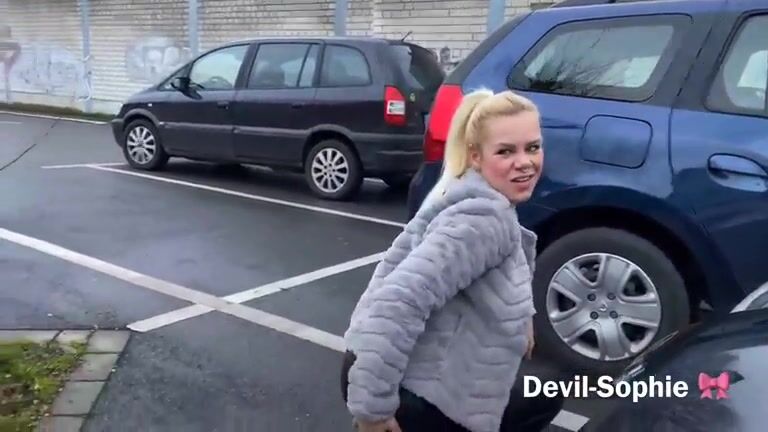 Blonde milf pooping at the supermarket's parking