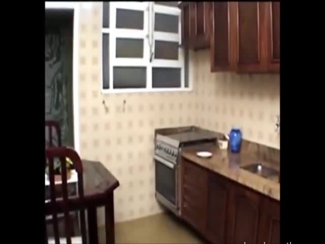Blonde milf shitting on kitchen floor