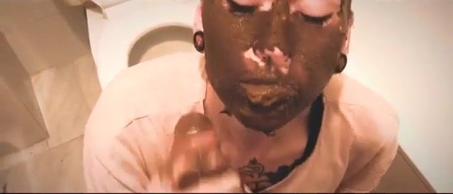 Dark haired college girl smears poop on her face and she gives her boyfriend a sweet blowjob.