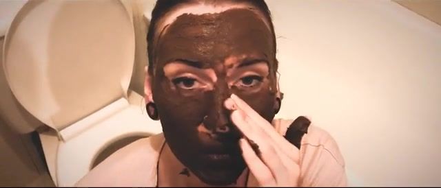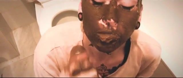 Incredible college girl smears poop on her entire face. After that she starts sucking boyfriend's dick.
